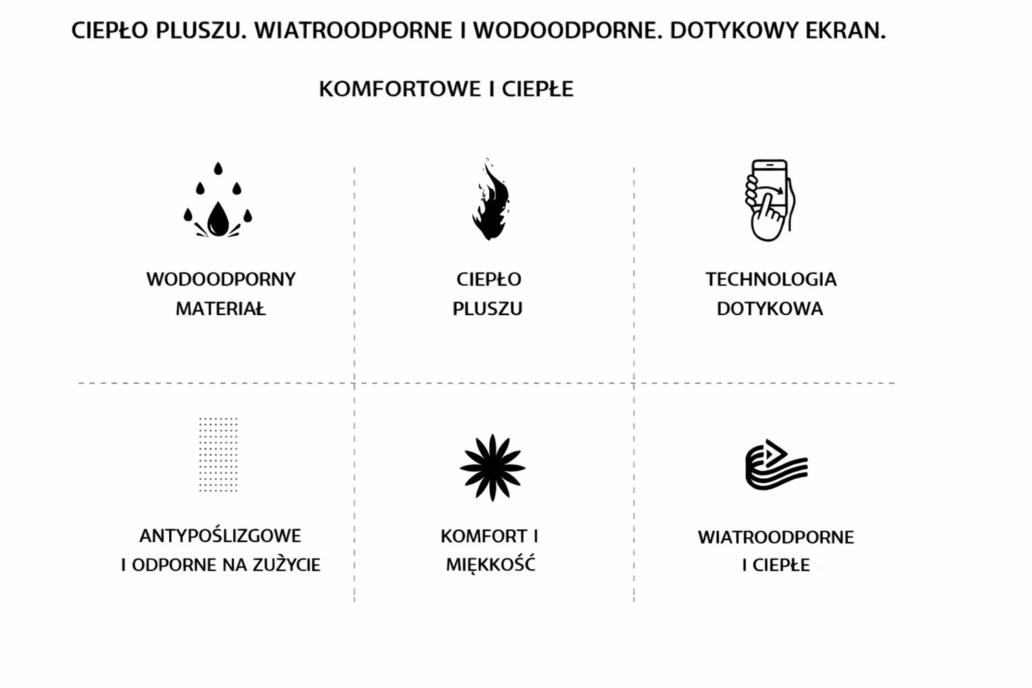 Dzięki czułym wstawkom dotykowym możesz bez problemu obsługiwać smartfon w rękawiczkach — przewijać, pisać wiadomości, odbierać połączenia i korzystać z aplikacji, nawet w zimnie.